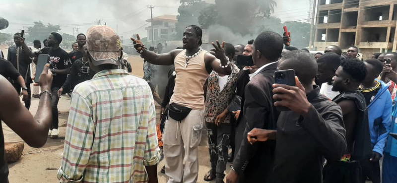 Martins Otse, popularly known as VeryDarkMan addressing protesting youths in Benue